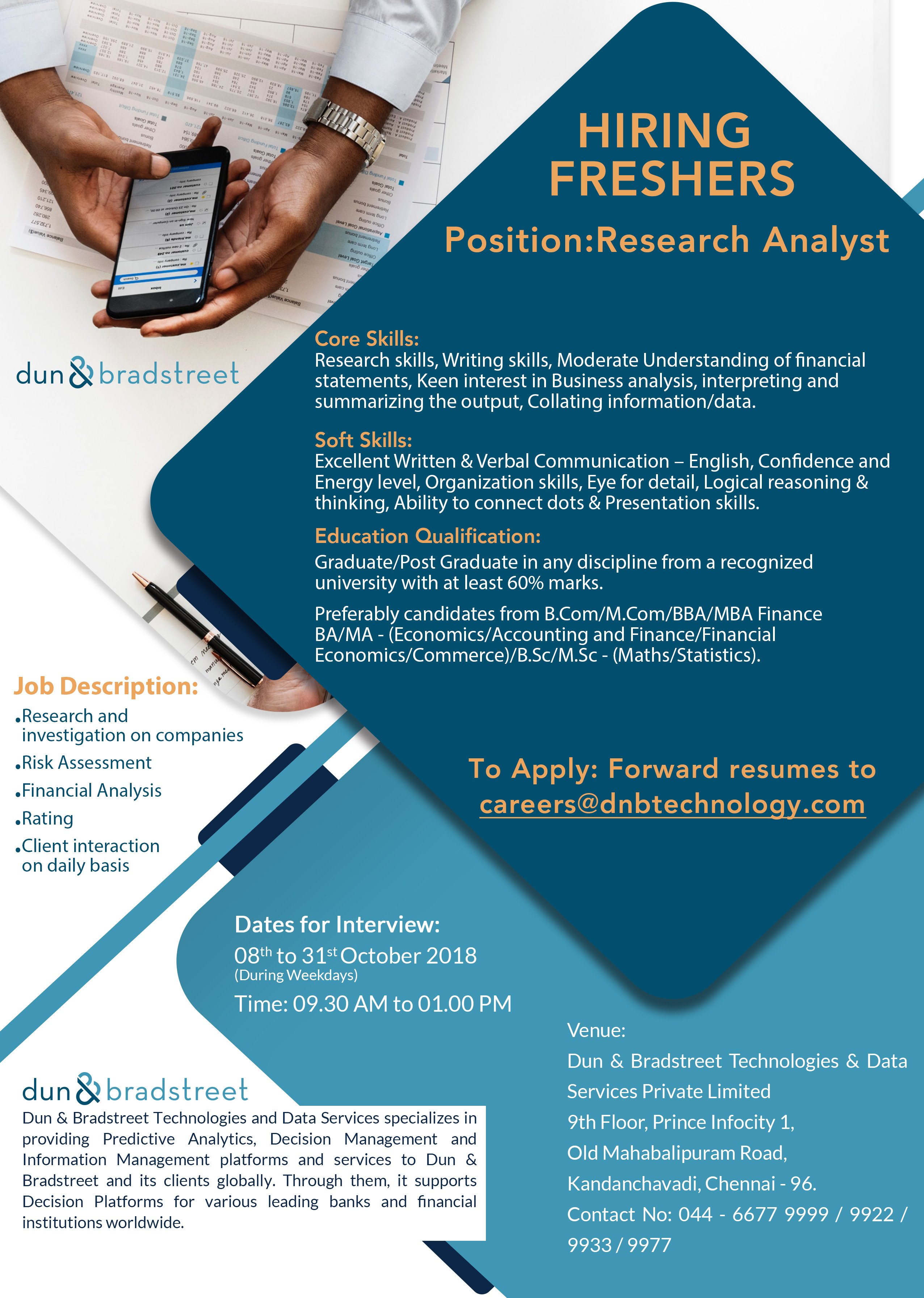 Apply for Market research analyst jobs in Chennai. Market Research Analyst. Market Research Analyst - Any graduate- Freshers will be considered- Good.